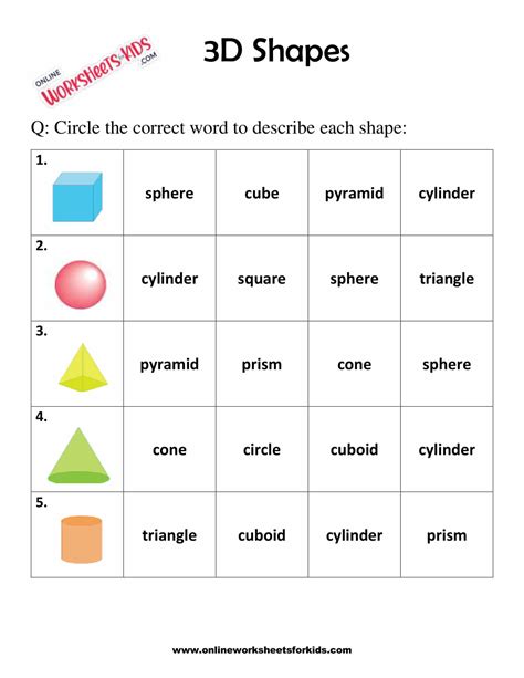 3d Shapes Worksheet Free EduForKid